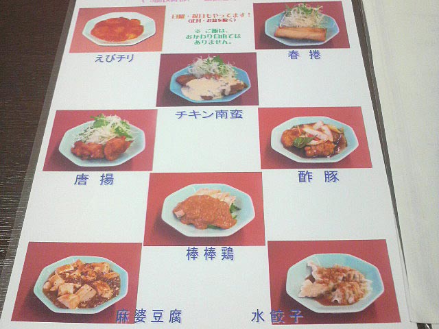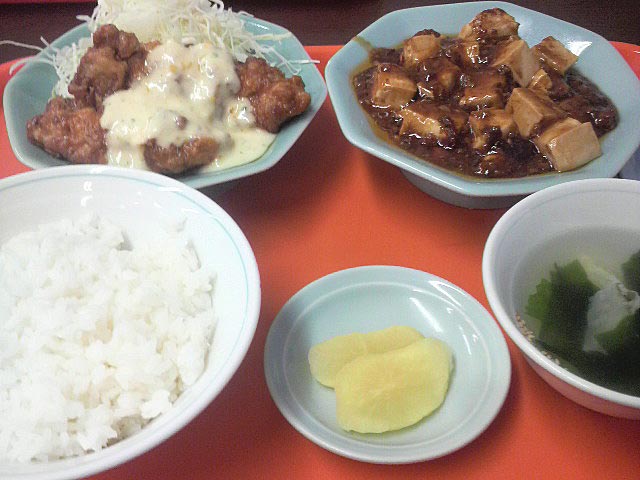 この中から2品選ぶのね、よし、チキン南蛮とマーボー豆腐だ。
