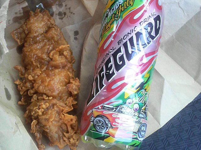 たこ焼きは普通だったんだが、カリカリ伝説がすごかった。袋を開けると大?と思うくらい大きい。相方さんは大を頼んでたがさらにでかい。